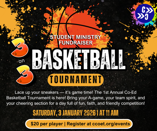 Lace up your sneakers — it’s game time! The 1st Annual Co-Ed Basketball Tournament is here! Bring your A-game, your team spirit, and your cheering section for a day full of fun, faith, and friendly competition! This super fun event will be at 11:00am on Saturday, January 3rd and all funds will go towards our Student Ministry to help send kids to Summer Camp 2026. Games will be 3 on 3 and the entry fee is $20 per player, rules and information will be sent out via email sometime after signing up and ahead of the tournament so be on the lookout for that. Bring your family, friends and neighbors - we can't wait to see you there!
