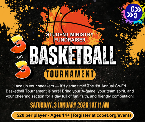 Lace up your sneakers — it’s game time! The 1st Annual Co-Ed Basketball Tournament is here! Bring your A-game, your team spirit, and your cheering section for a day full of fun, faith, and friendly competition! This super fun event is for ages 14+ and will be at 11:00am on Saturday, January 3rd and all funds will go towards our Student Ministry to help send kids to Summer Camp 2026. Games will be 3 on 3 and the entry fee is $20 per player, rules and information will be sent out via email sometime after signing up and ahead of the tournament so be on the lookout for that. Bring your family, friends and neighbors - we can't wait to see you there!